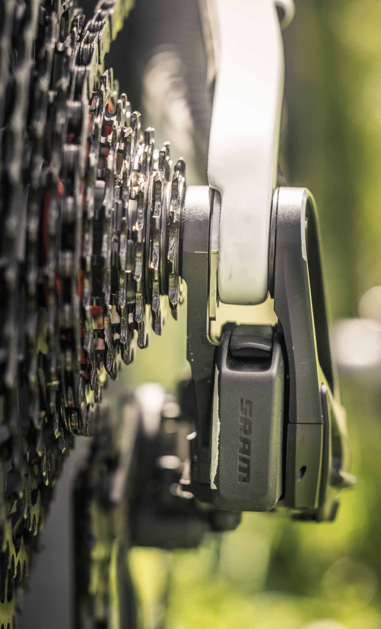 Die Flattop-Kette mit asymmetrischem Laschen-Design sowie die Zahnprofile am Kettenblatt und die Ganggassen der Kassette sind exakt aufeinander abgestimmt und wurden als integriertes System entwickelt. Man muss also zwingend innnerhalb der SRAM-Systematik bleiben, wenn es um Ersatzteile oder Upgrades geht. Doch das ist bei anderen Schaltungsherstellern auch nicht anders. Die ursprünglich sehr hohen Preise, die SRAM für Eagle Transmission-Komponenten aufruft, haben sich schon im ersten Halbjahr nach Veröffentlichung durch weit realistischere Straßenpreise entschärft.